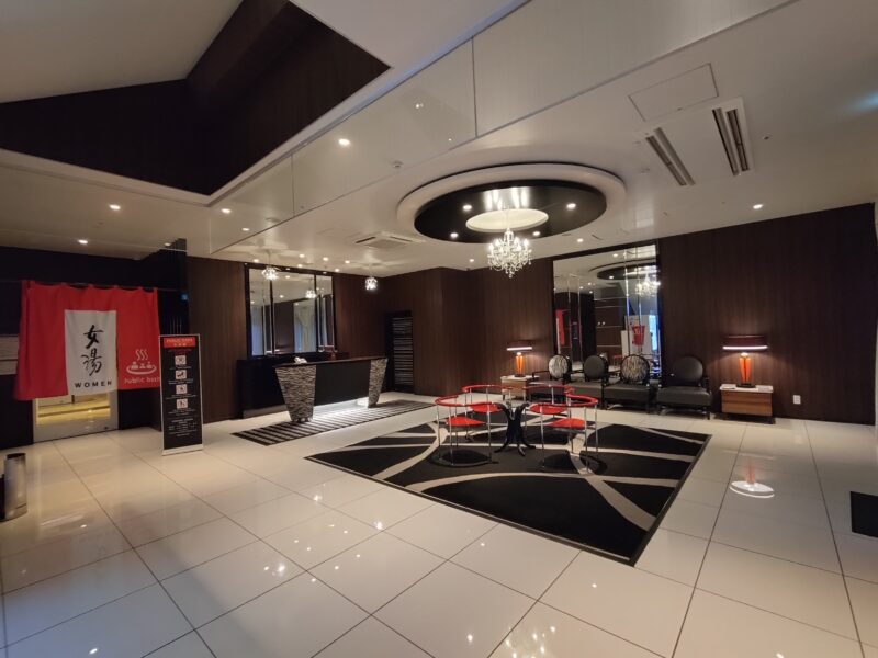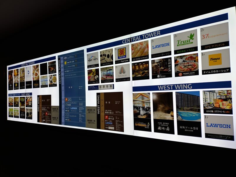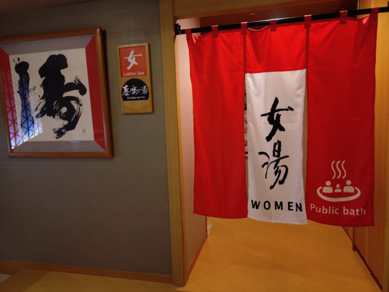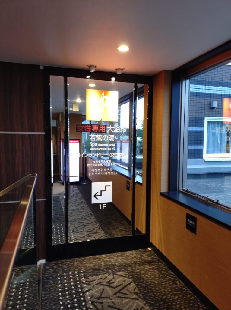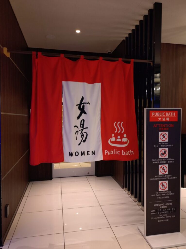 大浴場はそれぞれの棟にあり(イーストウイングは女性専用大浴場)、各大浴場の入り口付近を撮影しました。